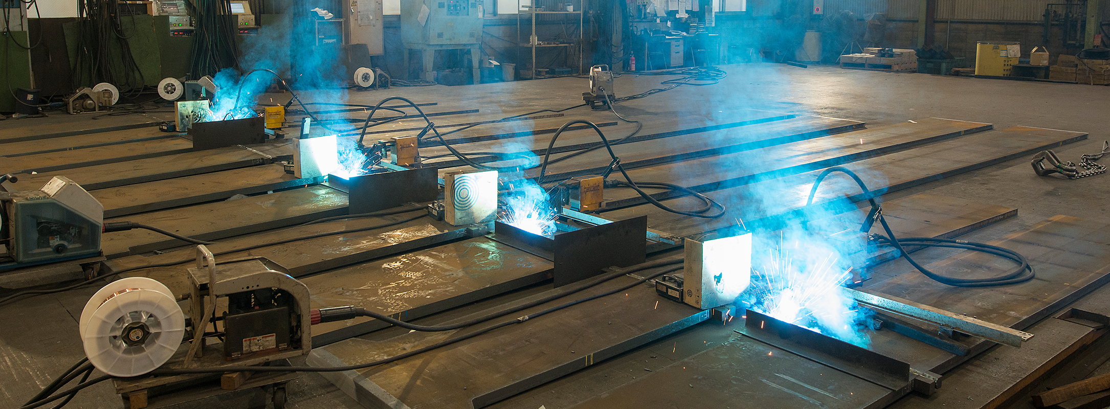 板継専用定盤で溶接ロボットを効率的にしようすることによって、月間1,000か所以上の板継溶接を可能にしています。